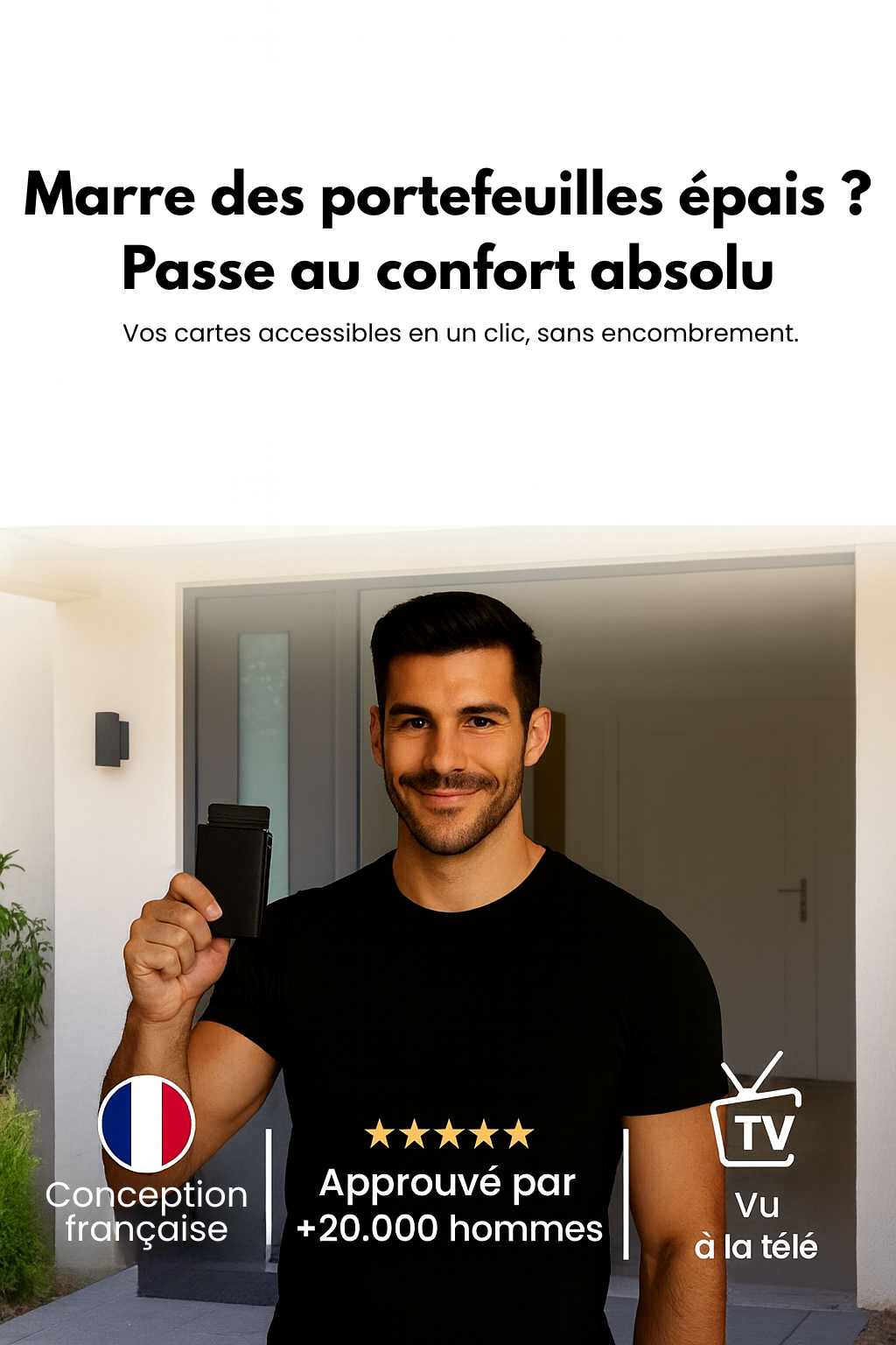 "A chaque passage en caisse, je stressais : mes cartes étaient mélangées, je fouillais trop longtemps et je me sentais maladroit devant les autres. Je voulais simplement être plus organisé… Ce portefeuille a réglé le problème : un clic et tout est là. Je gagne du temps, je suis plus serein et mes paiements sont devenus fluides et naturels."